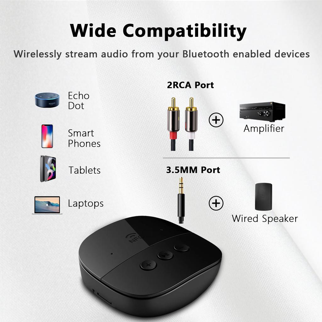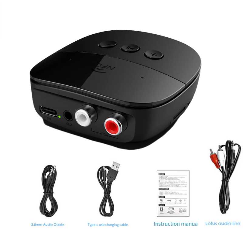 Аудиоприемник Bluetooth 5.3 3,5 мм AUX Jack U Disk NFC RCA музыкальный беспроводной адаптер с портом зарядки Type C для зарядки телефона