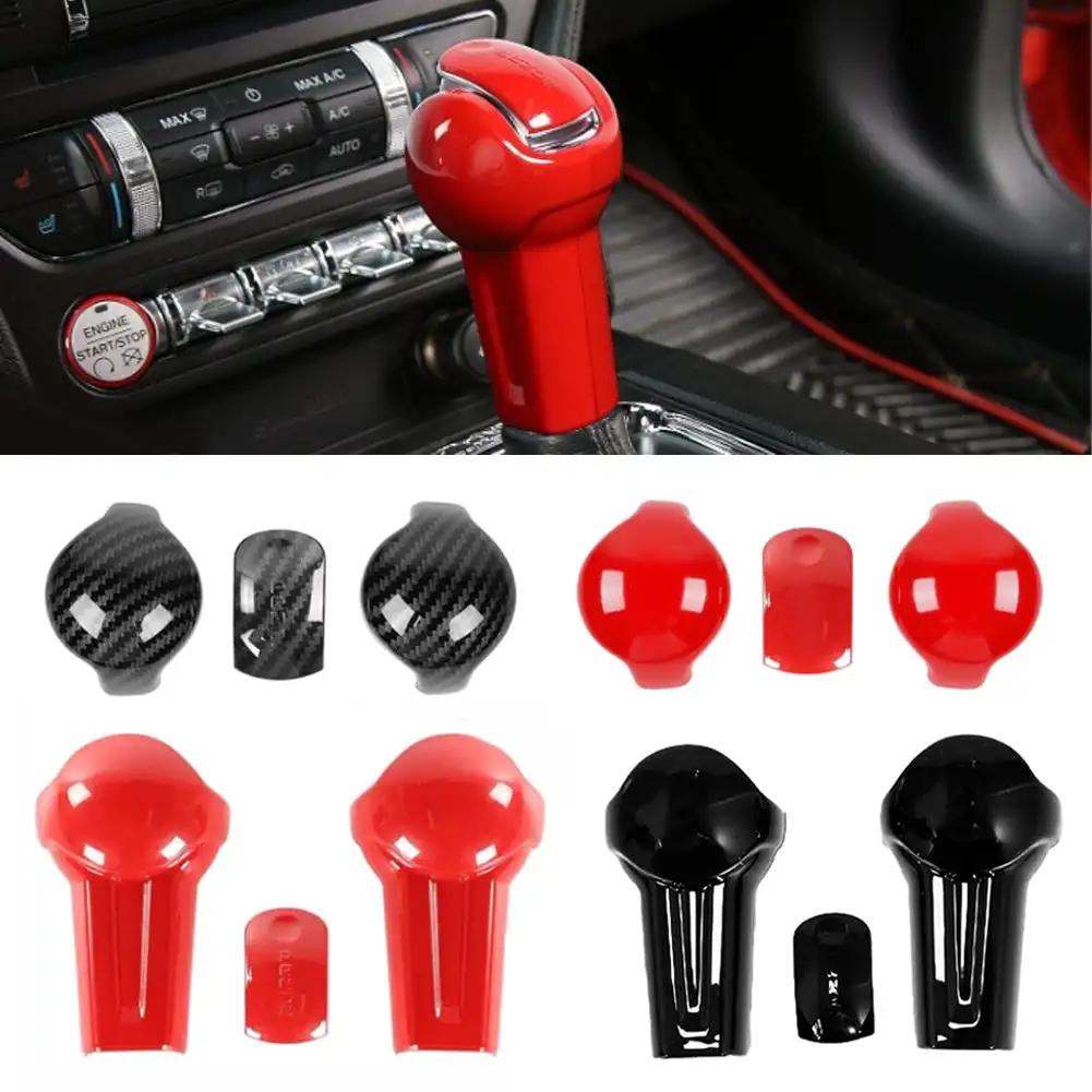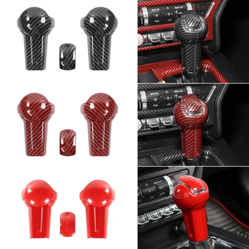 3 шт./компл. автомобильная ручка переключения передач головка авто внутренняя ручка переключения передач крышка отделка крышка красно-черное углеродное волокно для Ford Mustang 2015 - 2019