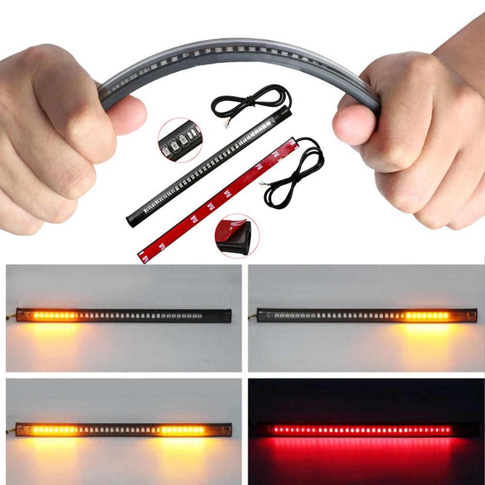 Гибкая светодиодная полоса для мотоцикла, задний указатель поворота, стоп-сигнал, лампа накаливания, стоп-сигнал 2835 3014 48 SMD, двухцветная