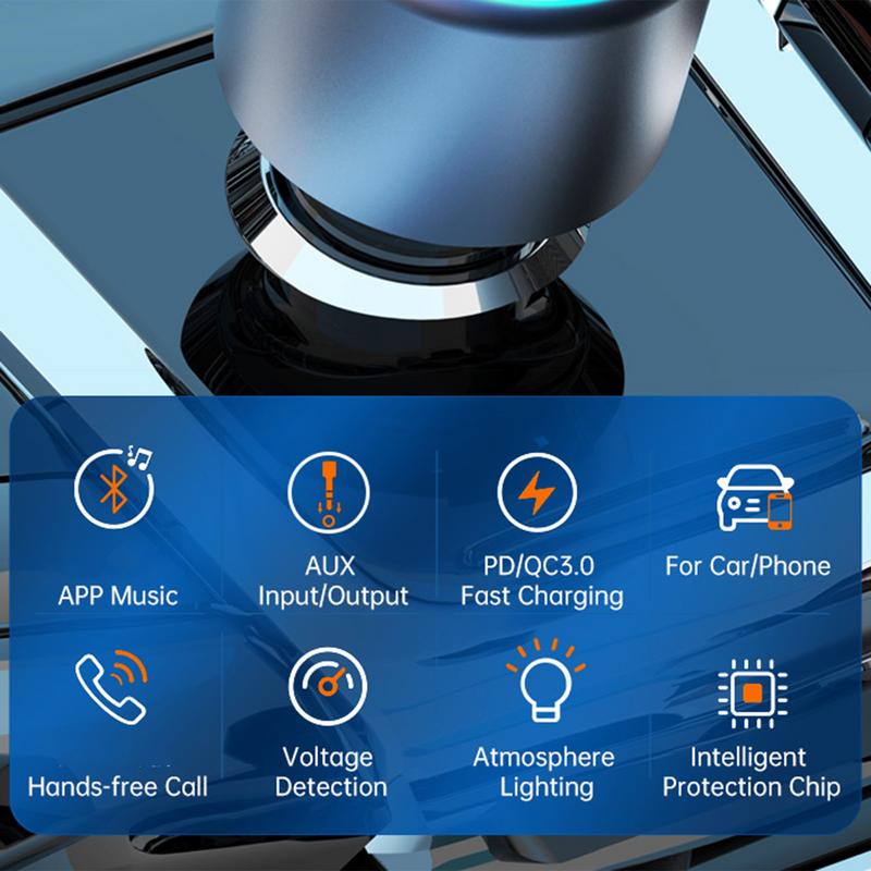 Автомобильное зарядное устройство для быстрой зарядки, цветной светодиодный фонарь, автомобильный адаптер QC3.0, MP3-плеер, беспроводной автомобильный комплект FM, громкая связь, Hi-Fi музыка