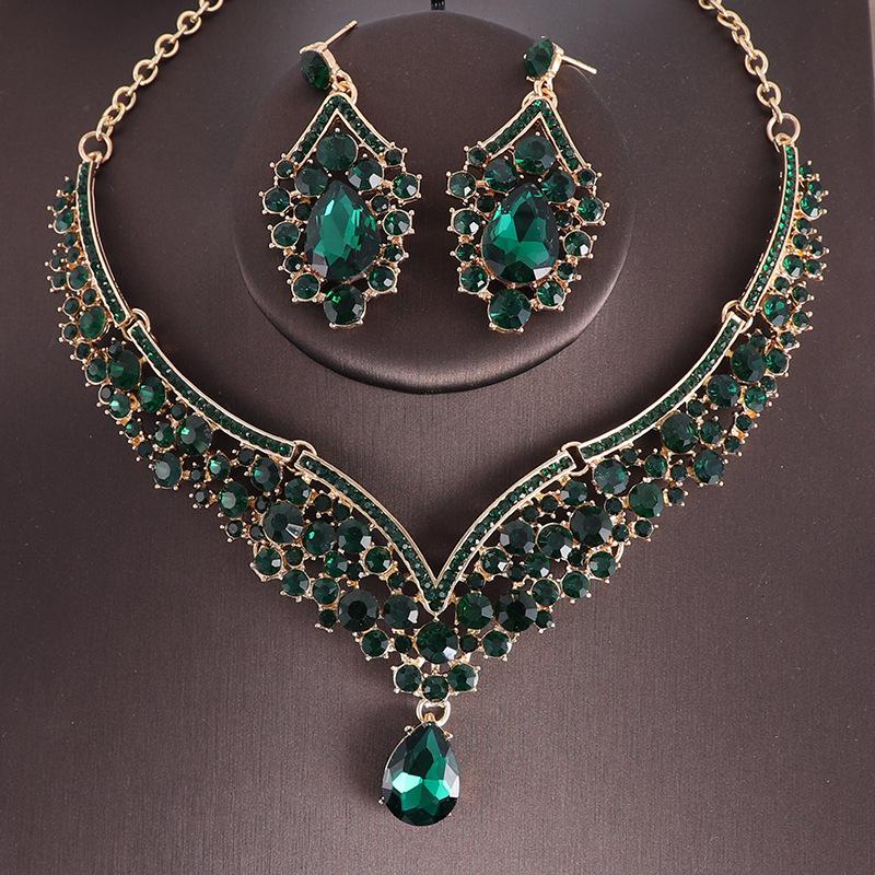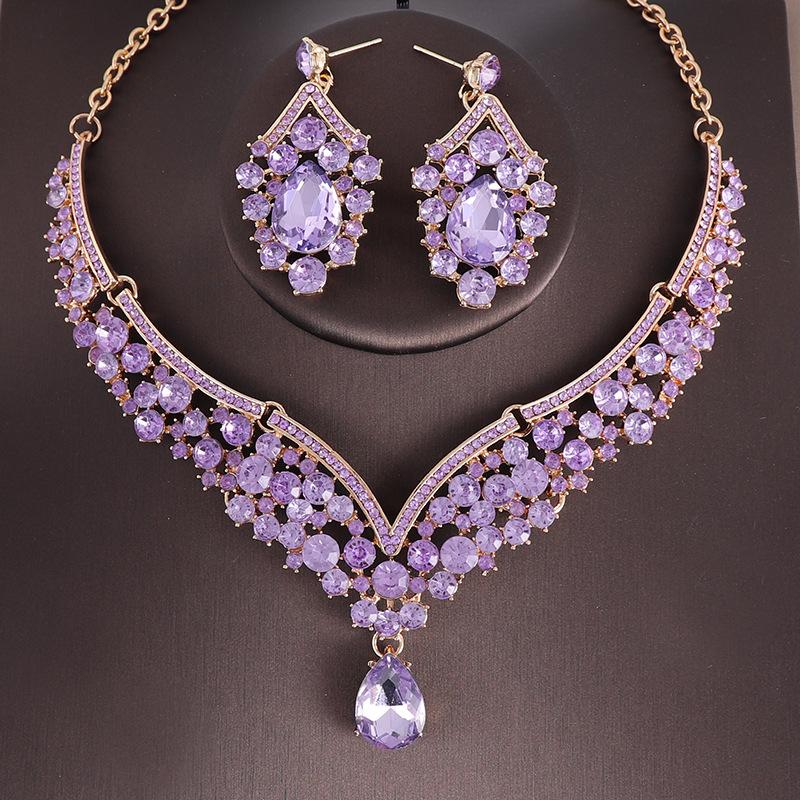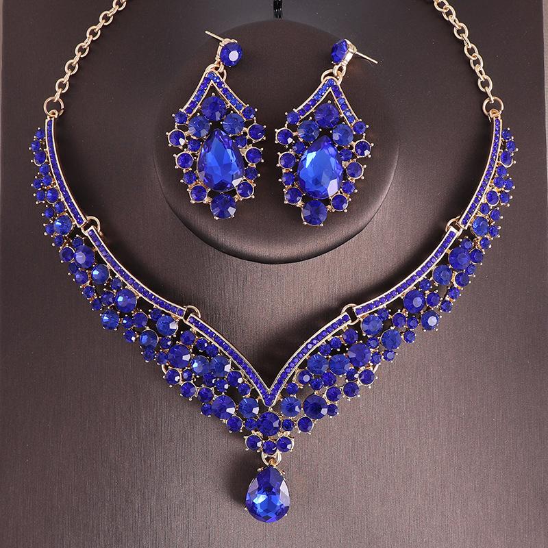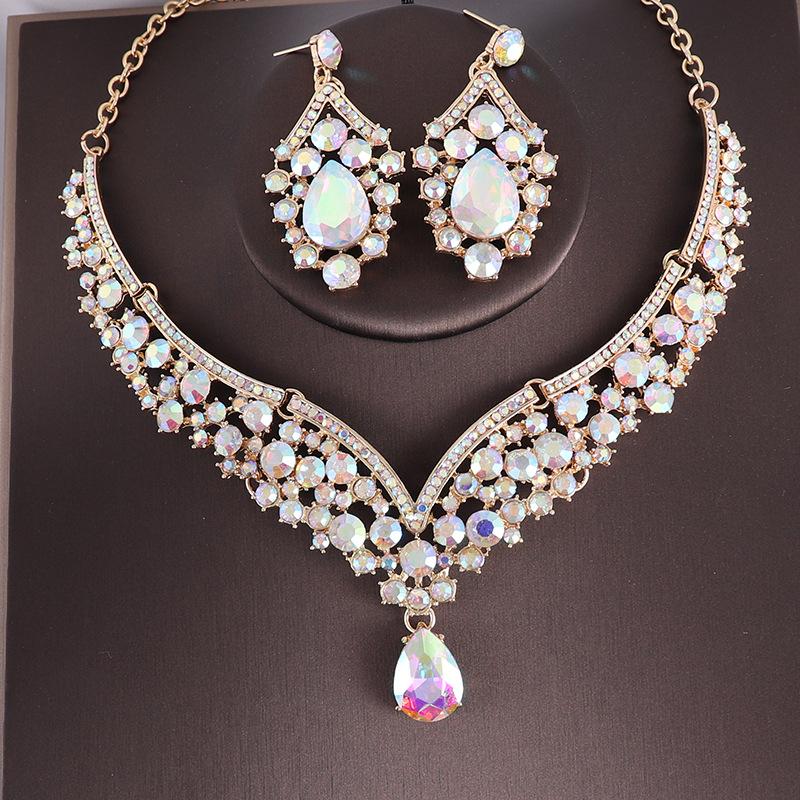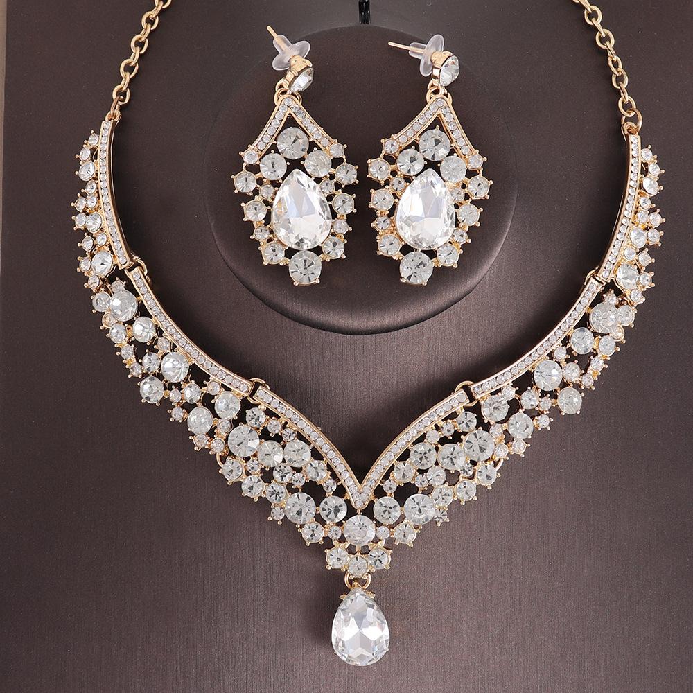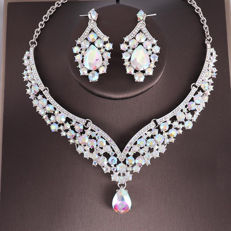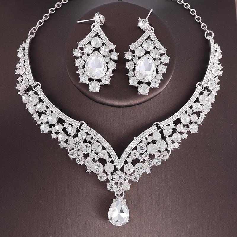 Свадебные украшения для невесты, комплект из двух предметов, изысканное ожерелье и серьги со стразами, вечерние аксессуары для торжественного платья, комплект ожерелья