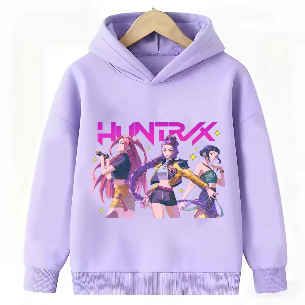 Purple Sweatshirt KPop Demon Hunter Rumi Derpy Cartoon Warm and Thick, Fashionable Casual Top Printed Hoodie for Boys and Girls