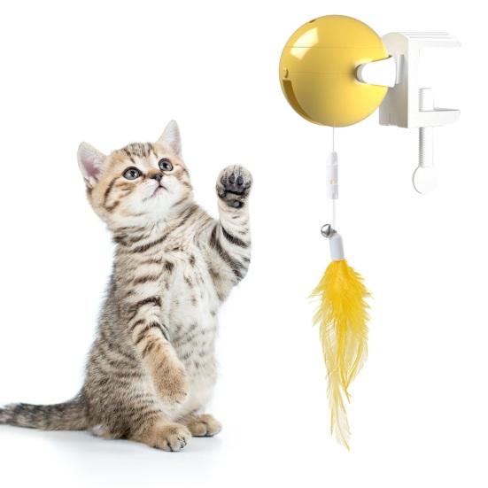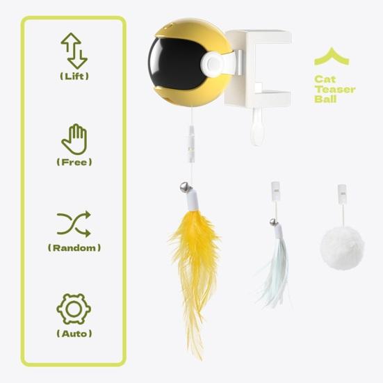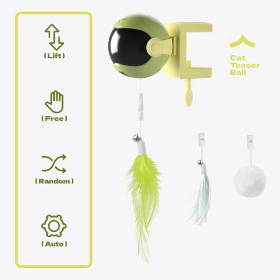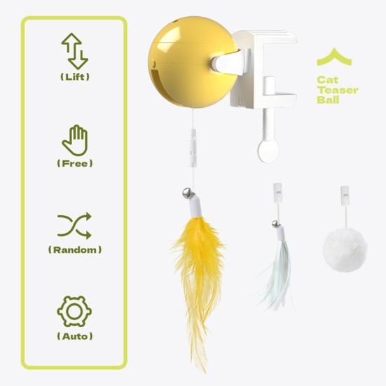 Развлечения без усилий: Наблюдайте, как любопытство вашей кошки растет с помощью электрической подвески, которая легко поднимает и опускает привлекательные перья и кисточки, обеспечивая бесконечное веселье без ручного вмешательства.
