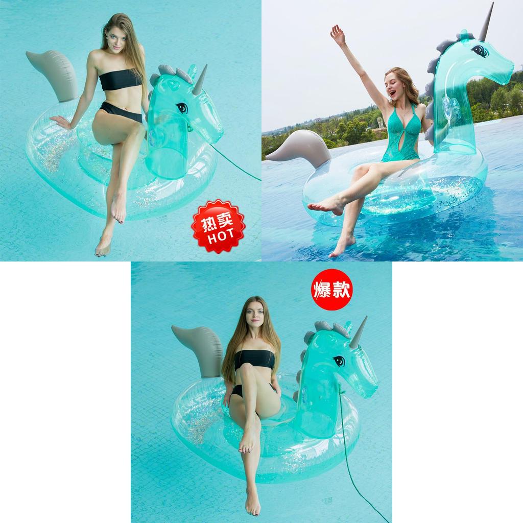 Блестящий прозрачный надувной плот-единорог, взрослый плавательный круг-кресло, зеленый