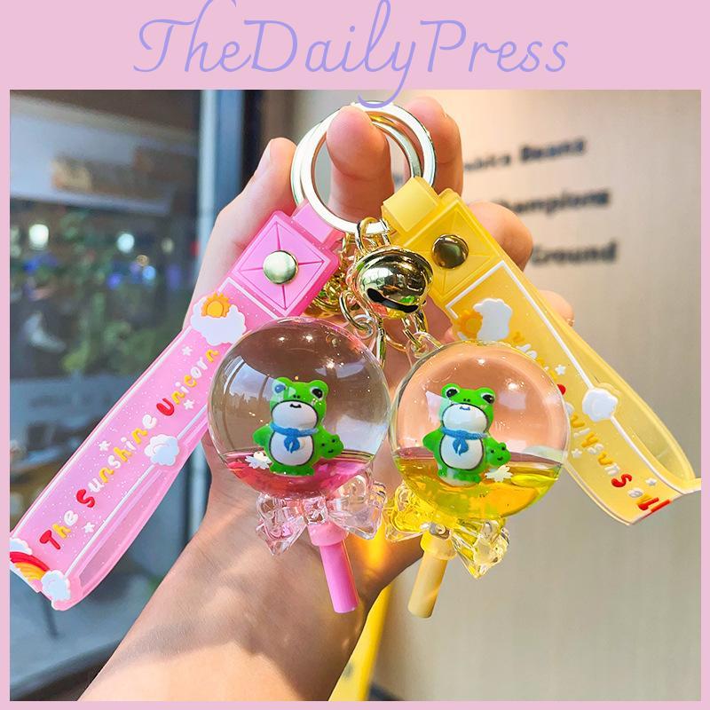 Уникальный дизайн: Особенности: плавающая бутылочка с песком и дизайн леденца в виде мультяшной лягушки, что делает его забавным и привлекающим внимание аксессуаром.