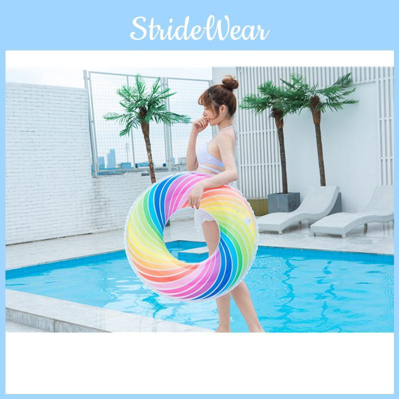 Thick Adult Rainbow Inflatable Swim Ring For Water Sports With Eco-friendly Pvc Material