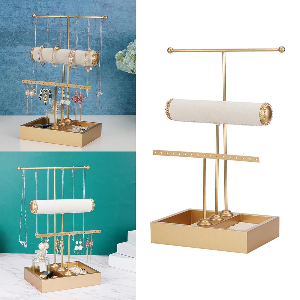 Трехуровневая подставка для украшений с подносом Элегантный держатель-органайзер