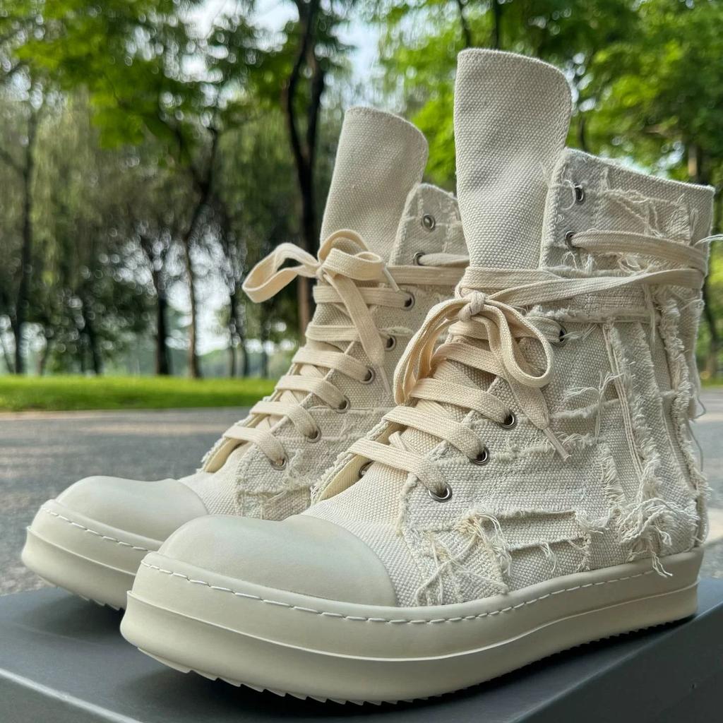 Ручная работа Высокое качество Винтаж Нищий Стиль Ретро Белые парусиновые кроссовки-ботинки