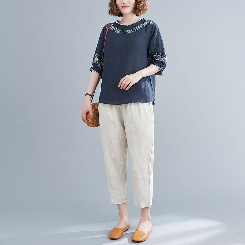 Женский костюм из 2 предметов, хлопковая футболка и брюки, хлопковый свободный повседневный летний костюм из двух предметов, топ и брюки