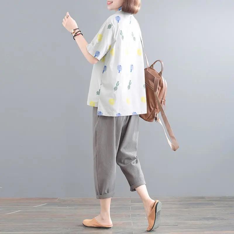 Женский костюм из 2 предметов, хлопковая футболка и брюки, хлопковый свободный повседневный летний костюм из двух предметов, топ и брюки