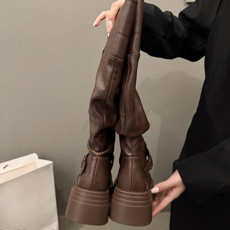 Новые модные полусапоги на толстой подошве для женщин на осень и зиму с ремешком-пряжкой, высокие сапоги