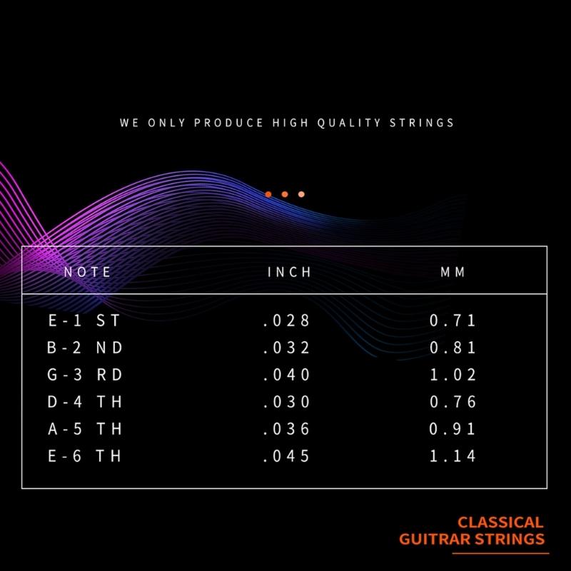 6 шт. Классические нейлоновые струны для гитары .028-.045 Замена струн для фолк-гитары Аксессуары для акустической гитары Простые в использовании