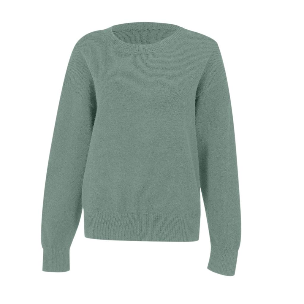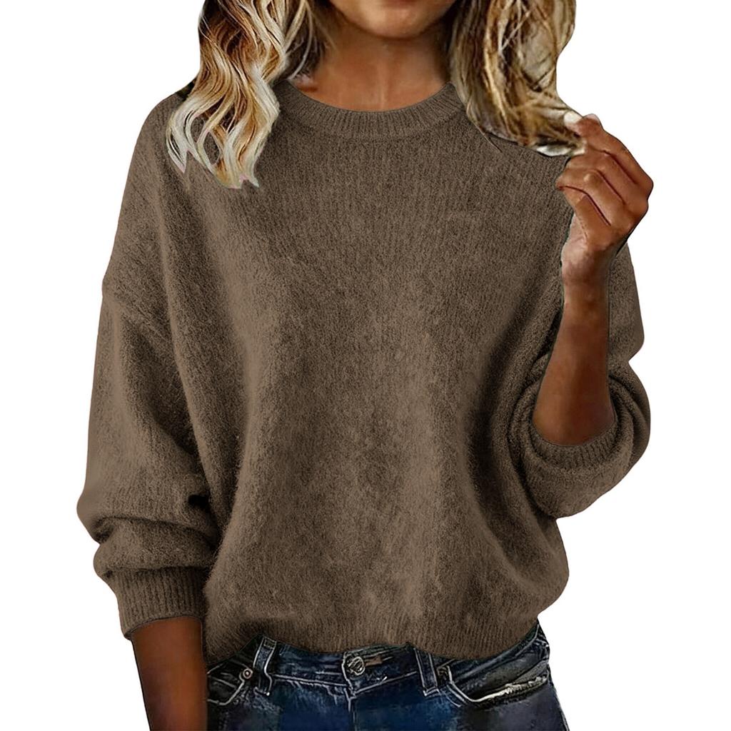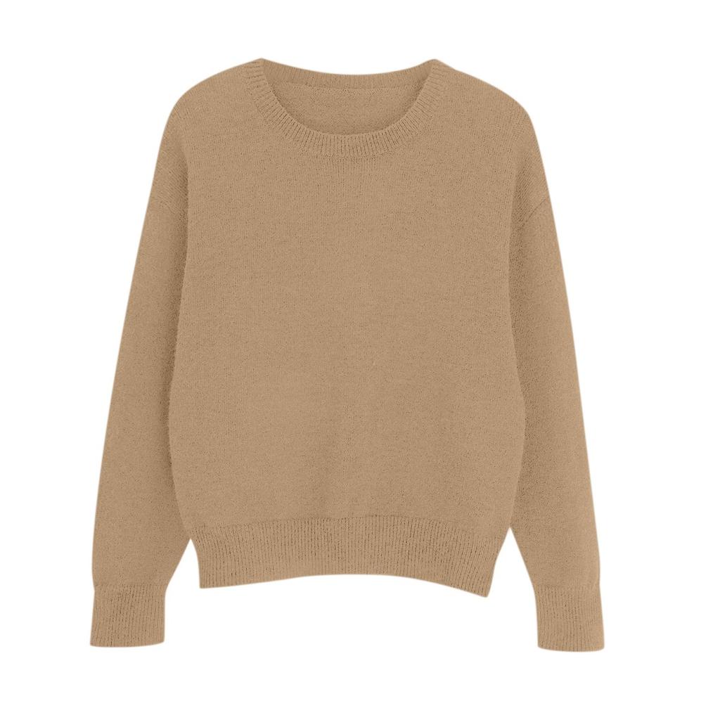 Женский свободный свитер в стиле ретро, мягкий однотонный, с маленьким круглым вырезом, короткий