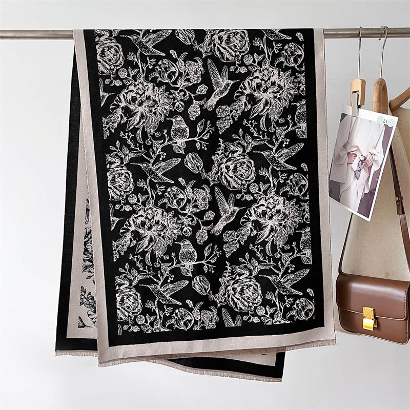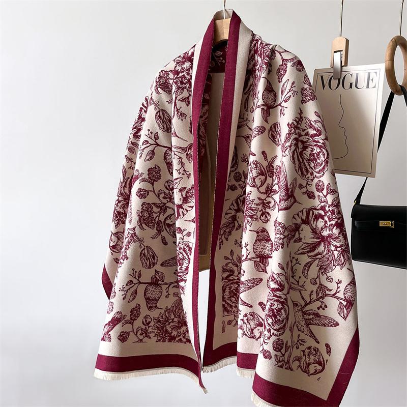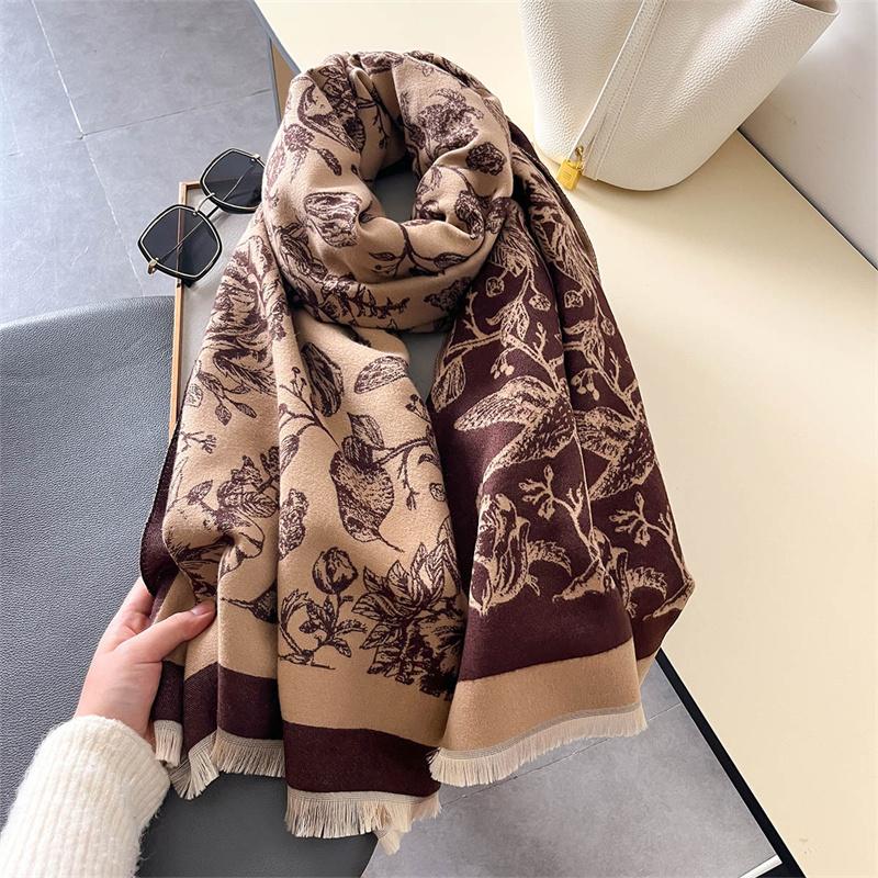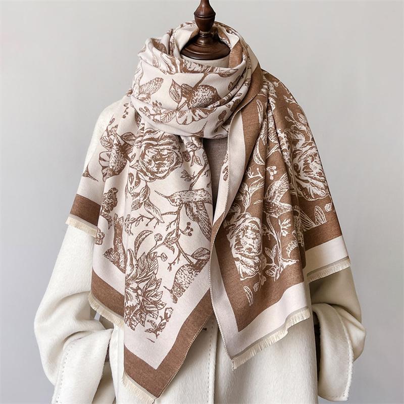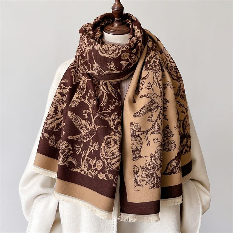 Зимний Теплый Кашемировый Шарф Для Женщин Роскошный Принт Пашмина Шаль Обёртывание Шейный Платок Женский Буфанда Эшарп Дизайн Повязка на Голову