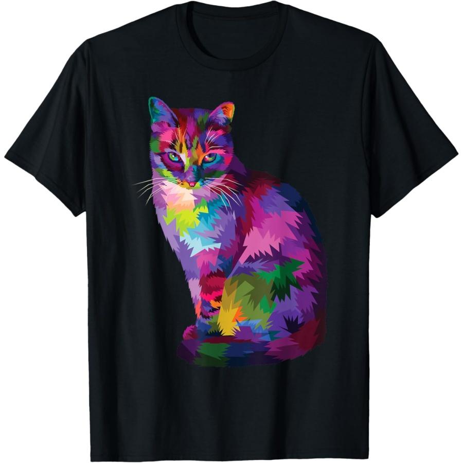 Радужный полосатый кот Яркий кошачий спектр Портрет котенка Футболка для мужчин женщин детей
