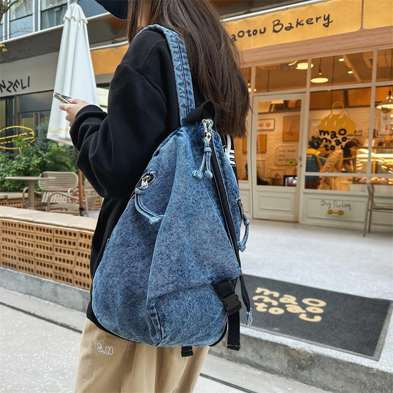 Рюкзак из ретро-денима большой вместимости, женский легкий рюкзак