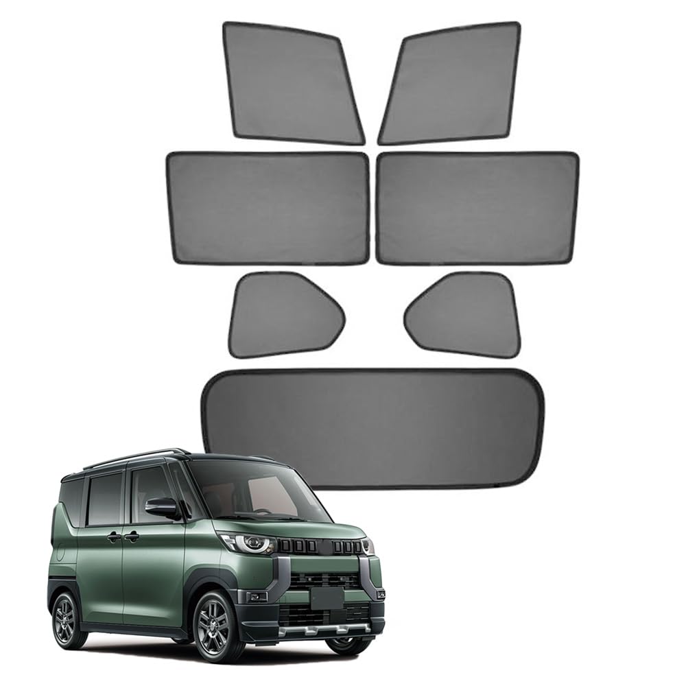 Custom car window sunshade net curtain for the new Delica Mini B3 series (B34A/B35A/B37A/B38A) (May 2023 - current models). Includes magnetic mesh curtains for side windows, sun protection, and a breathable, easy-to-install sunshade. Note: This product is shipped folded, so there may be some wrinkles when first used.