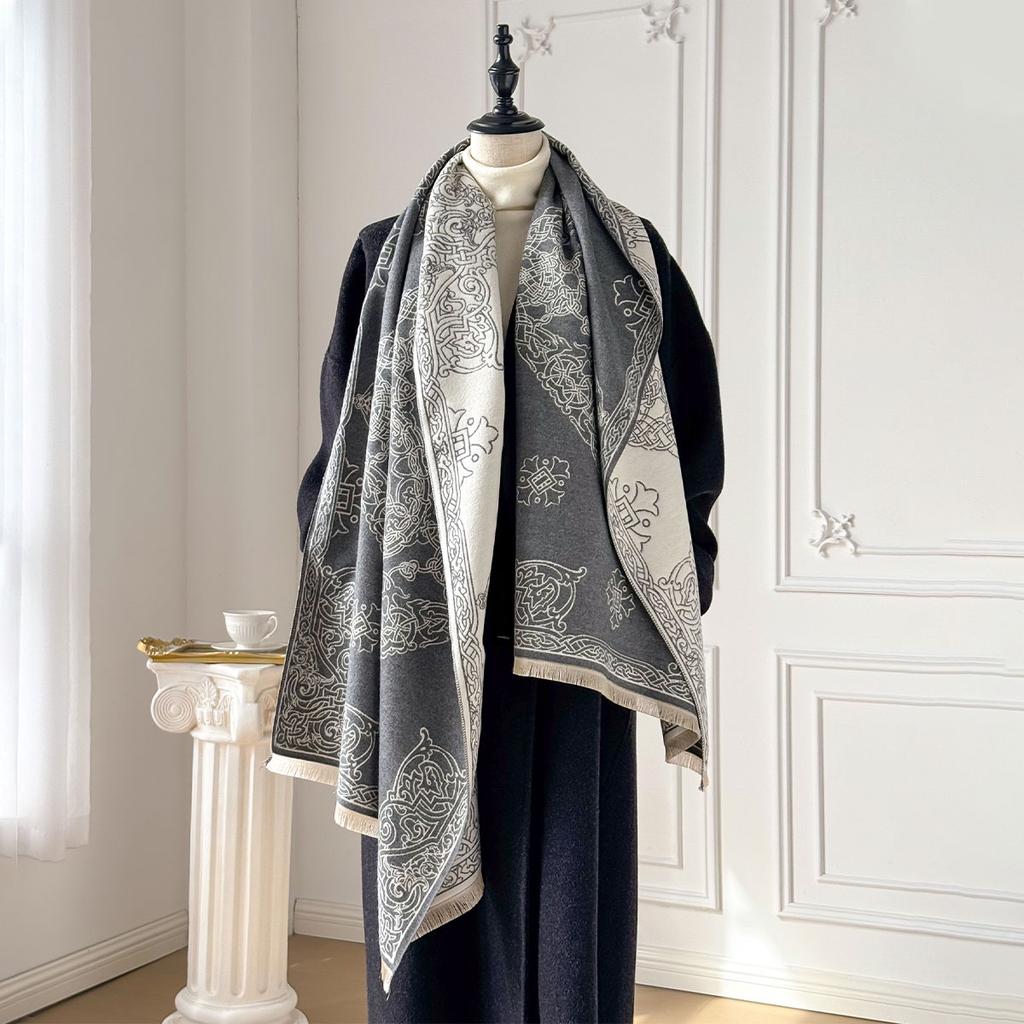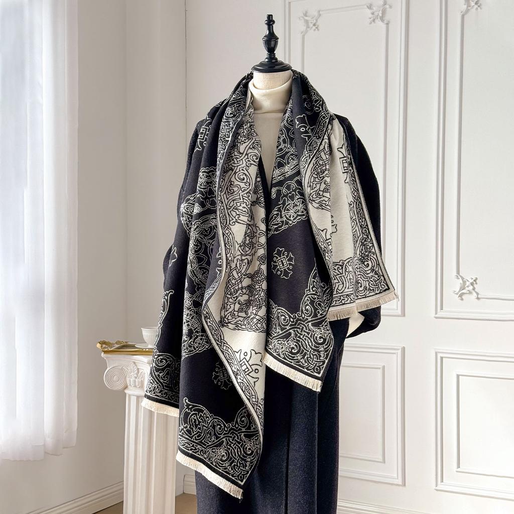 Зимний теплый кашемировый пончо-шаль-шарф, роскошный принт, толстая пашмина, накидки, повседневная буфанда, хиджаб, столы, эшарп