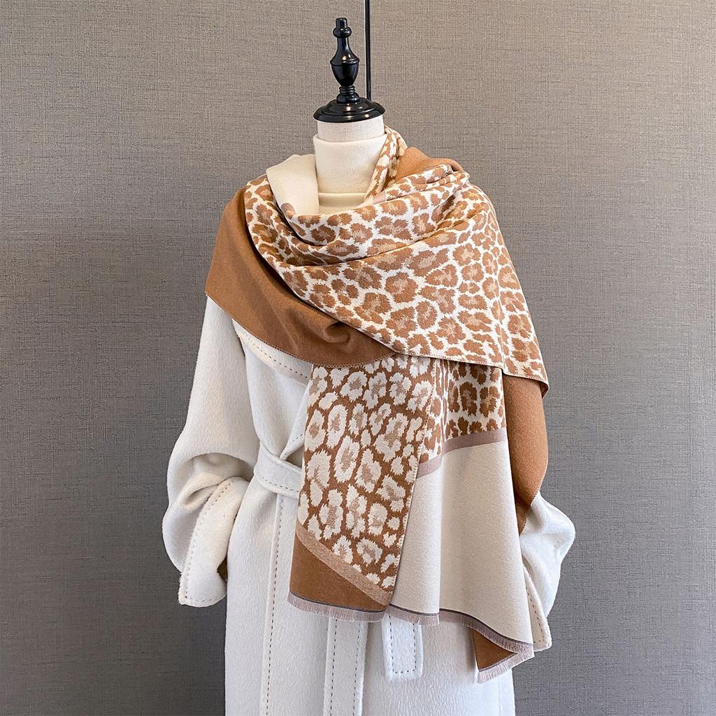 Осенне-зимняя мода Леопардовый шарф для женщин Утолщенный теплый Многофункциональный Универсальный Декоративный платок Мягкий Буфанда