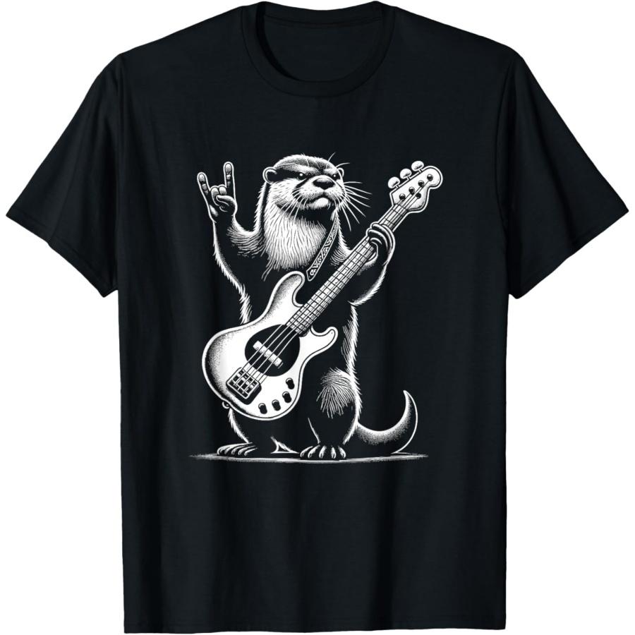 Рок-н-ролл выдра, играющая на гитаре, смешная мужская женская футболка с выдрой