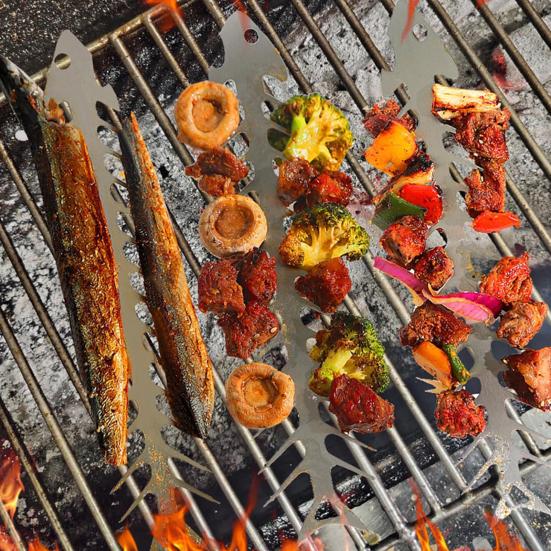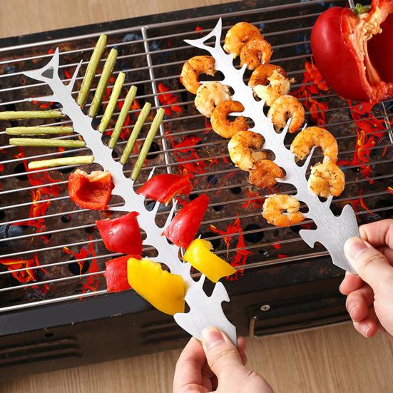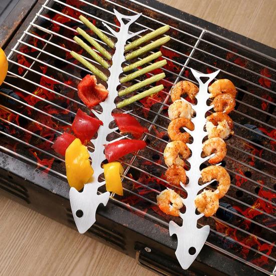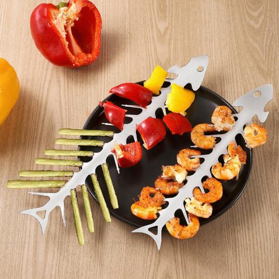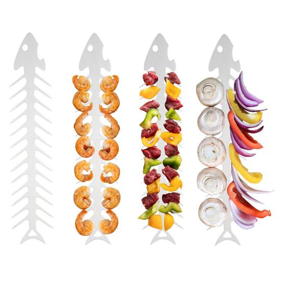 Мясоперерабатывающие формы: Наши шампуры для барбекю в форме рыбьей кости имеют специальные наконечники, предотвращающие падение пищи.. Более того, еда легко скользит вверх и вниз по каждой вилке.