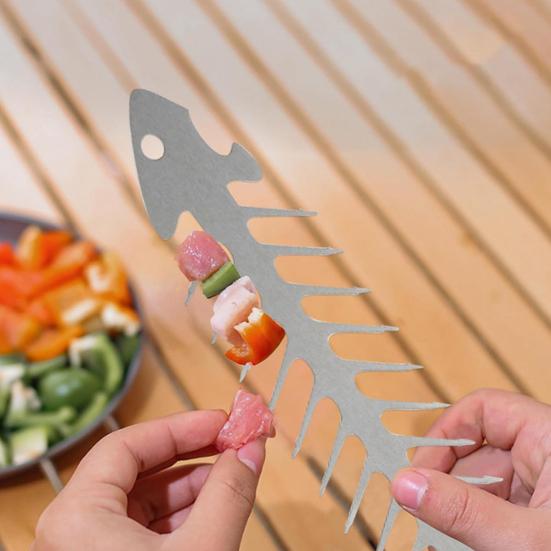 Универсальный: Шпажки для барбекю помогают готовить несколько продуктов одновременно, таких как говядина, мясо, курица, овощи и другие.. Улучшите свой опыт приготовления барбекю с нашими шампурами для барбекю в форме рыбьих костей.