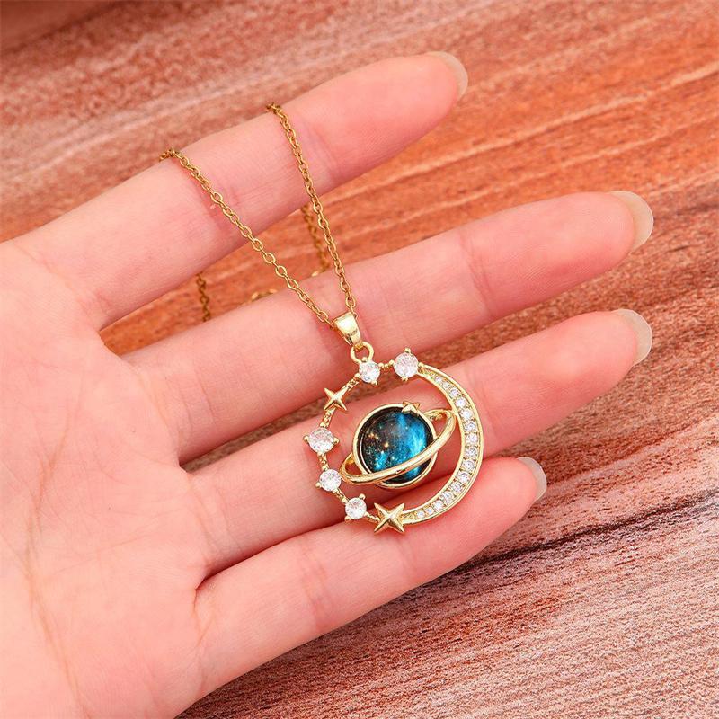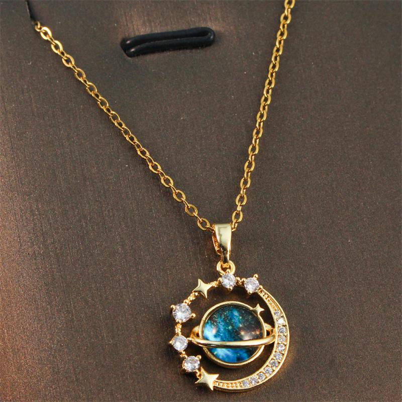 Изысканное ожерелье с подвеской в виде планеты «Звездное небо» синего цвета, легкая роскошь, циркон, звезды и луна, цепочка-колье для ключицы, ювелирное украшение в подарок