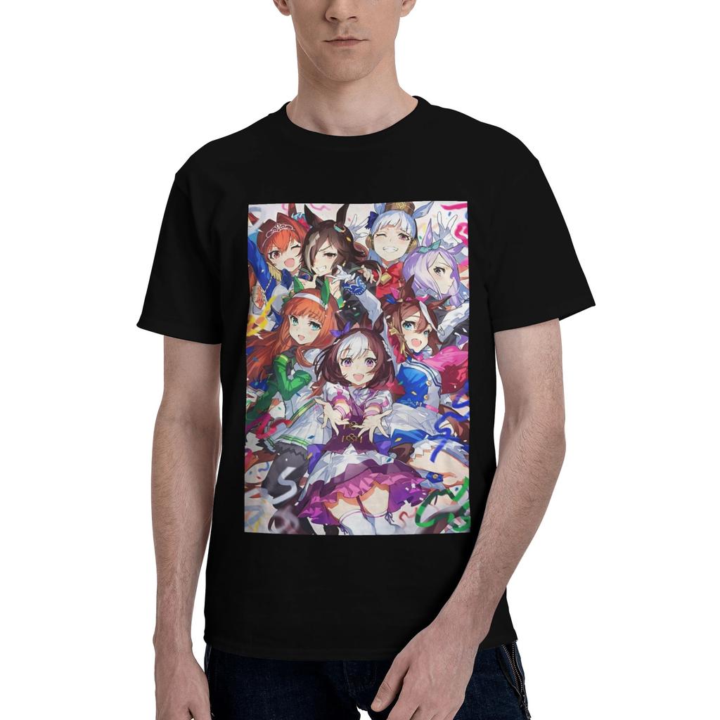 Винтажная аниме-футболка Umamusume Pretty Derby для мужчин и женщин, хлопковая футболка с круглым вырезом, футболка с коротким рукавом, летние топы