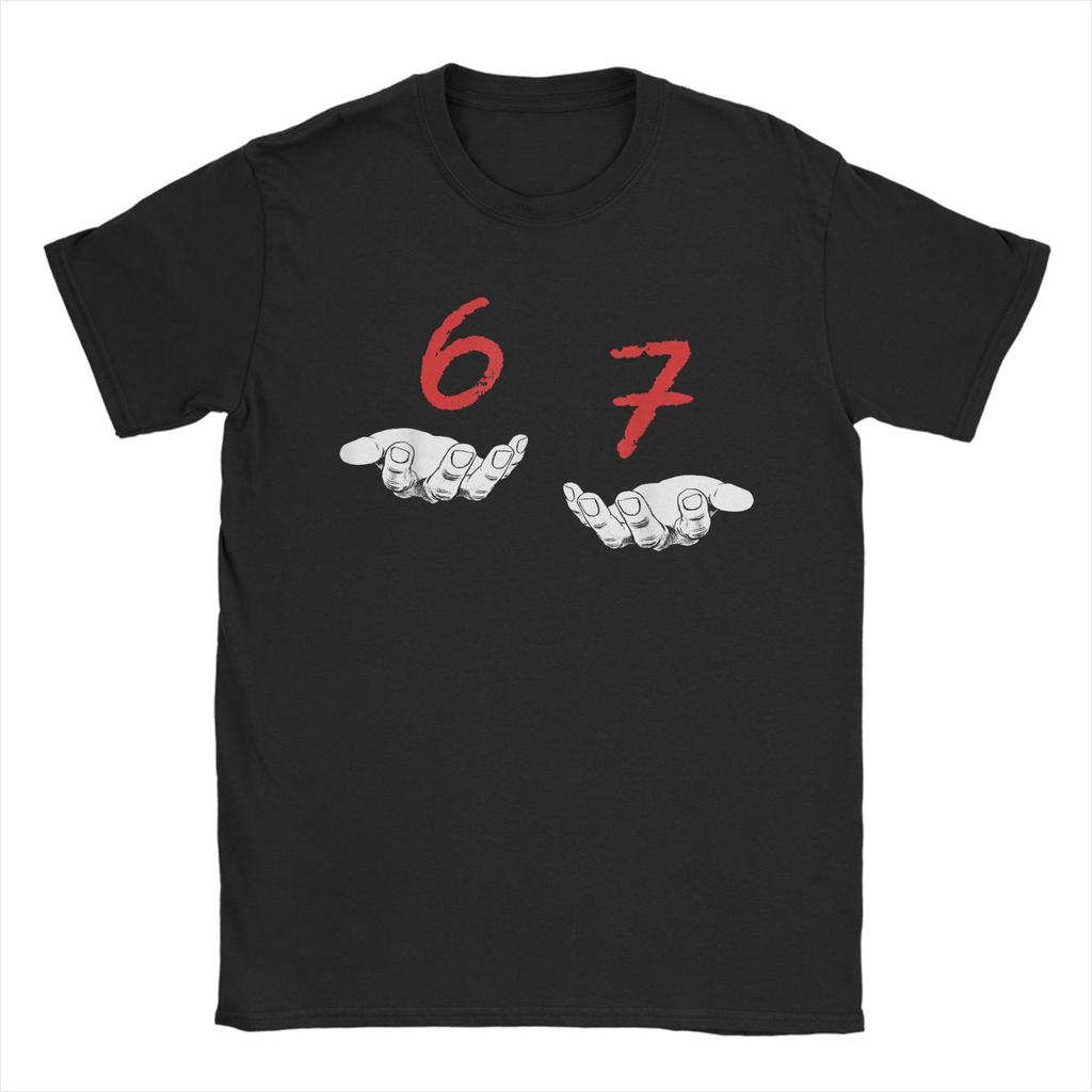 Leisure Six Seven 6 7 Meme Funny Hands T-Shirt Men O Neck Cotton T Shirts Gen-Alpha Slang Short Sleeve Tees Printing merchandise