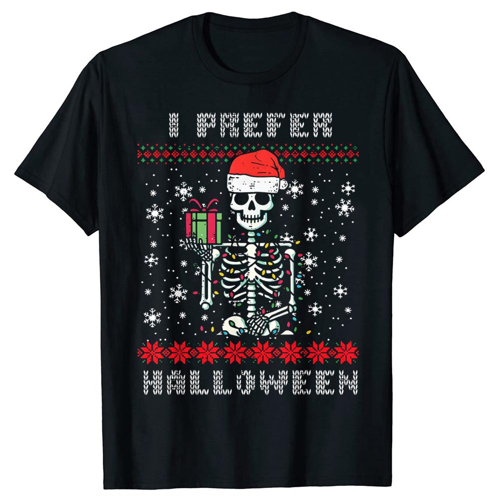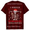 Рождественский Скелет Я Предпочитаю Хэллоуин Уродливая Рождественская Футболка 100% Хлопок Мужская Мода Повседневная Футболка Свободная Оверсайз Уличная Одежда Футболка