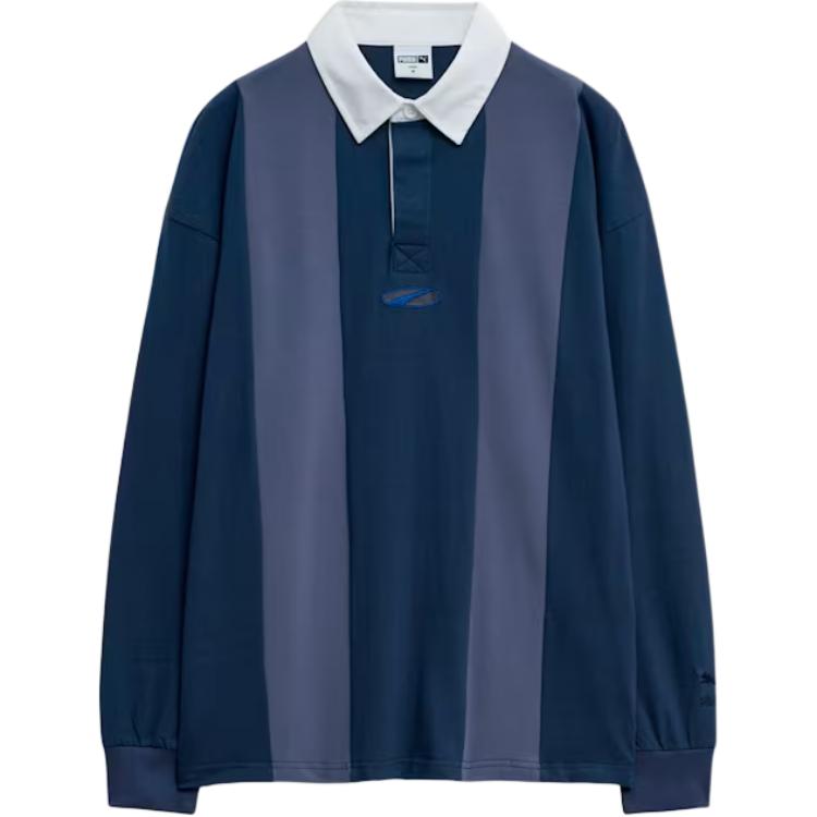 Puma Полосатая комбинированная рубашка-поло с длинным рукавом и воротником поло для мужчин, топы, темно-синий 94090702
