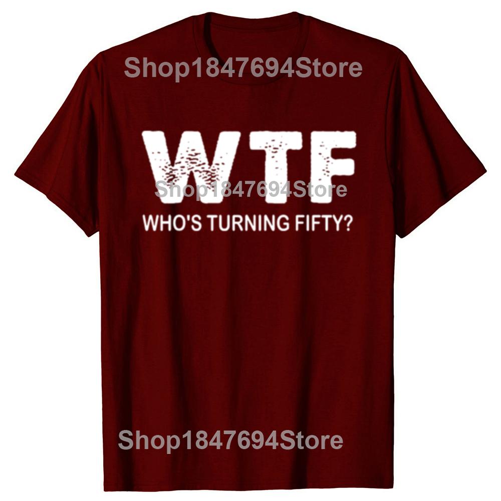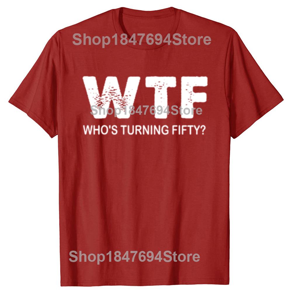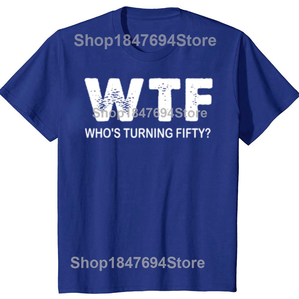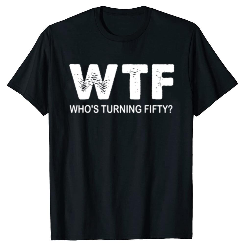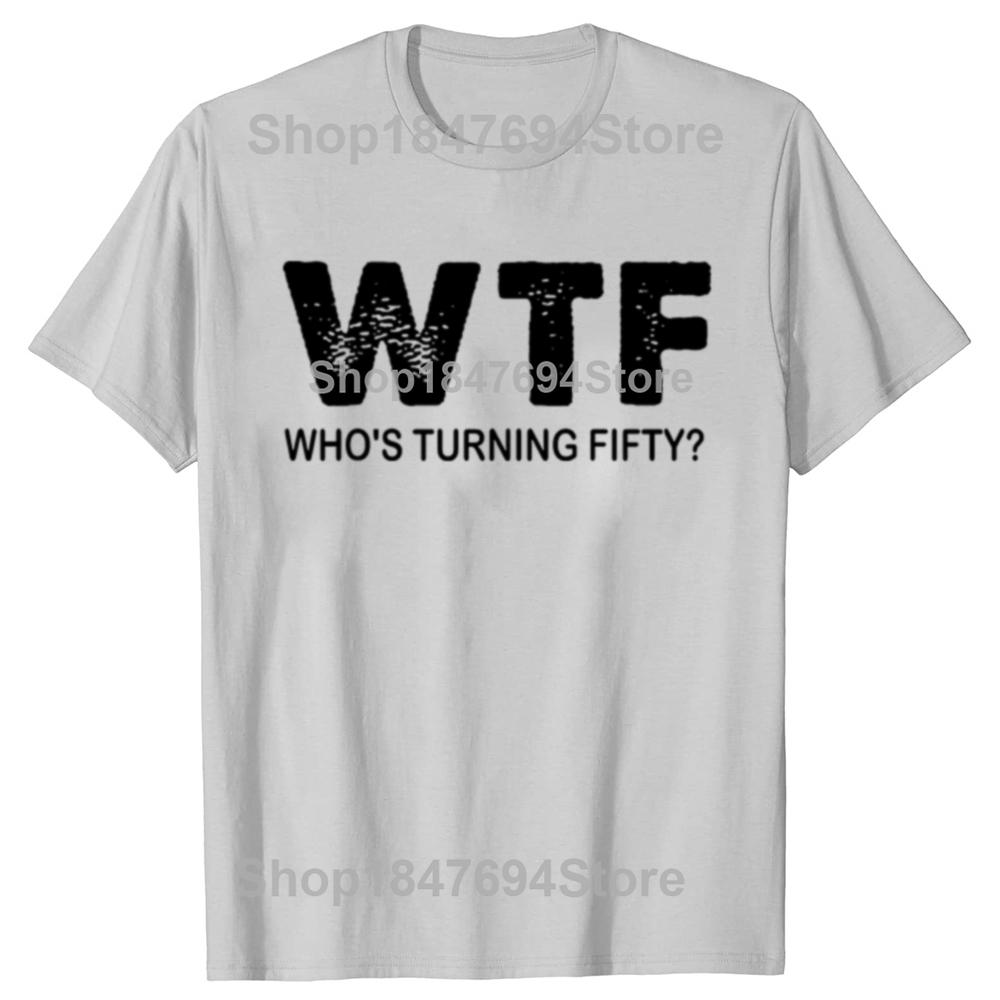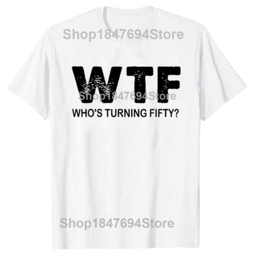 С 50-летием WTF Кому исполняется пятьдесят Смешные футболки на 50-летие Мужская мода Повседневная 100% хлопок Свободная футболка оверсайз