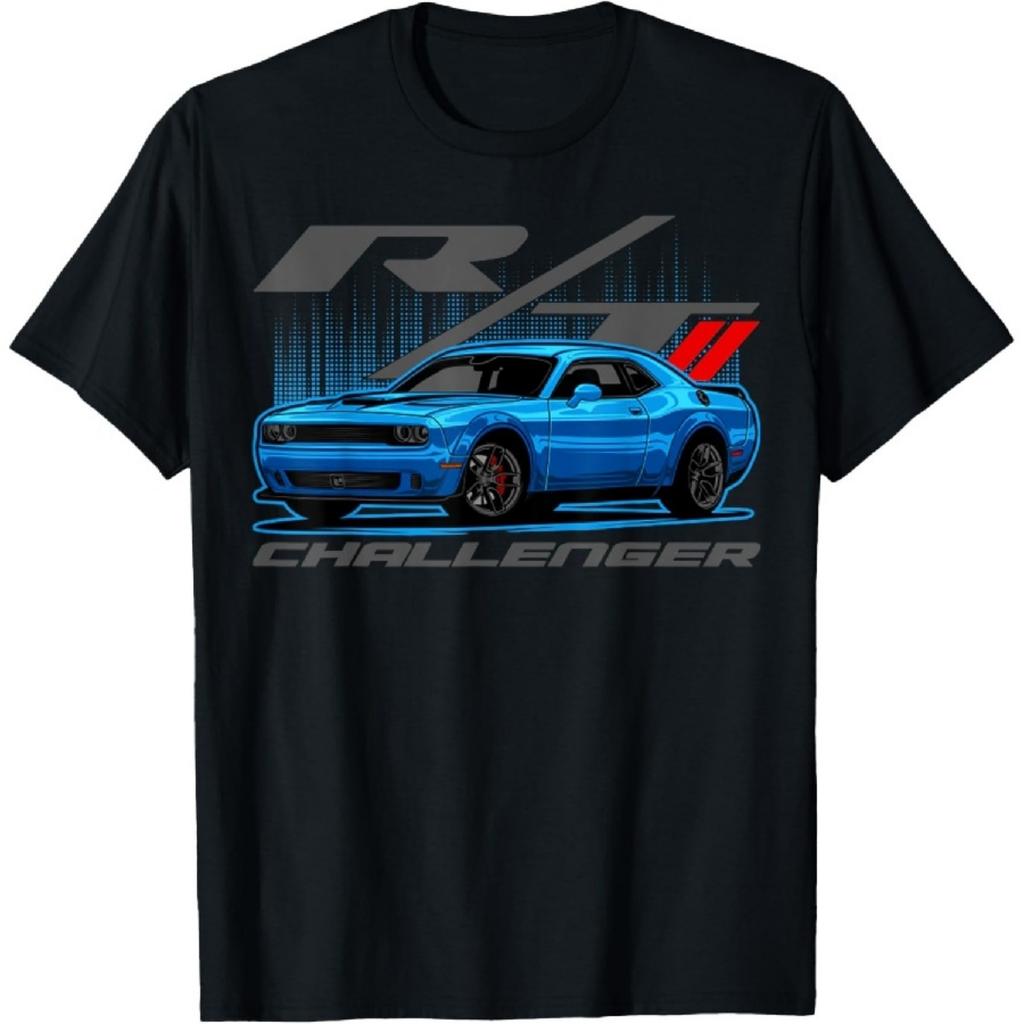 Ретро Синий Автомобиль Челленджер Красочная Автомобильная Футболка Performance