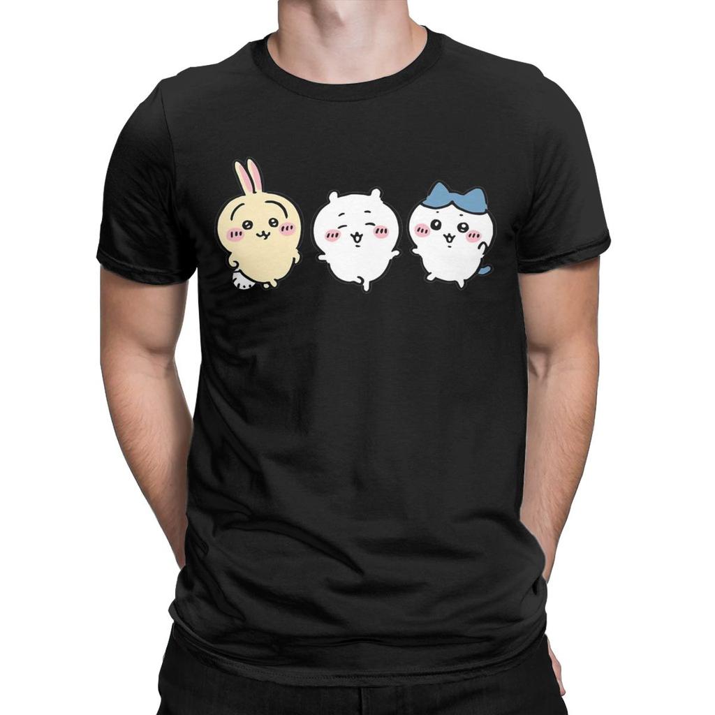 Мужские футболки Chiikawa Hachiware Usagi Cute Kawaii Vintage Cotton Tee Shirt Short Sleeve T Shirt O Neck Tops Plus Size