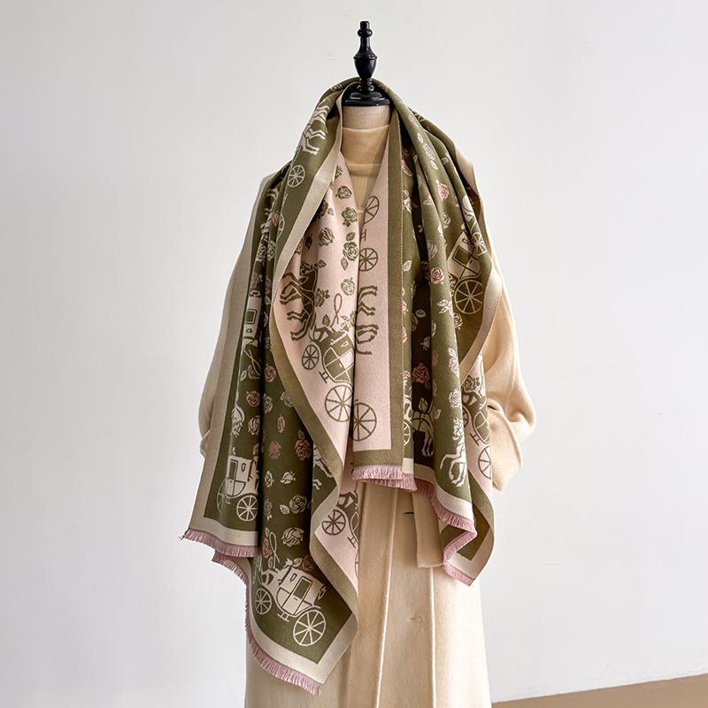 Elegant Damask Design Scarf Imitation Cashmere Soft Warm Versatile Shawl Coldproof Windproof Blanket Scarf For Autumn Winter