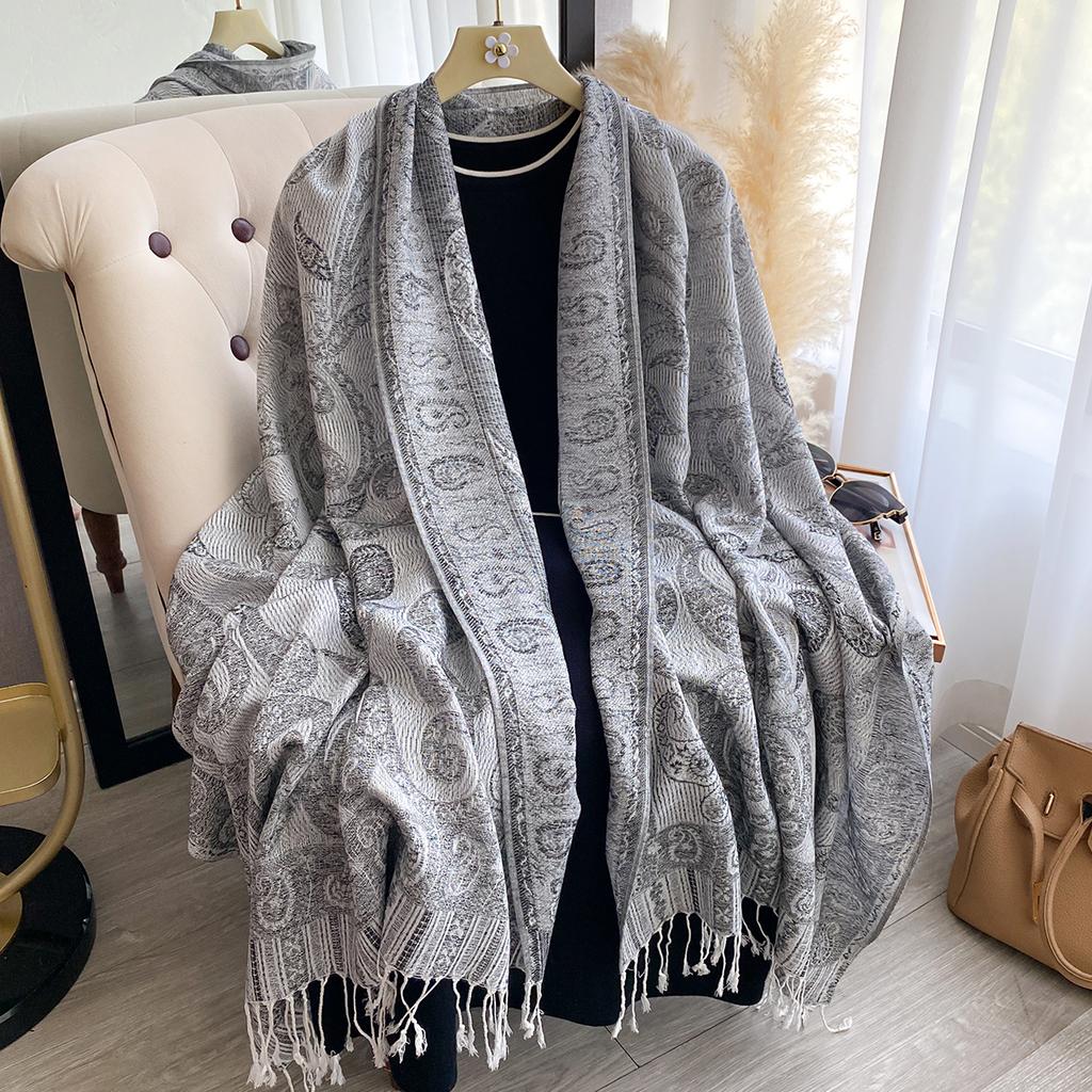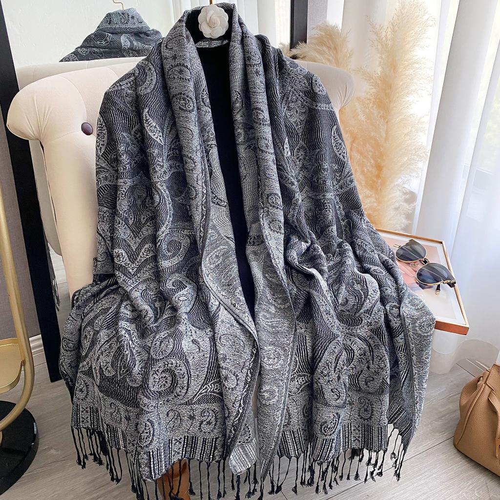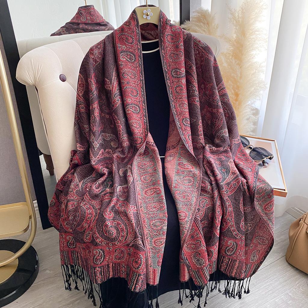 Модный женский зимний платок из искусственного кашемира с винтажным принтом, кисточками, толстый, теплый, пашмина, двусторонний, уличный шарф, шаль