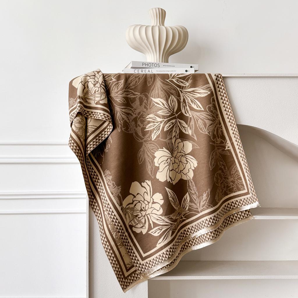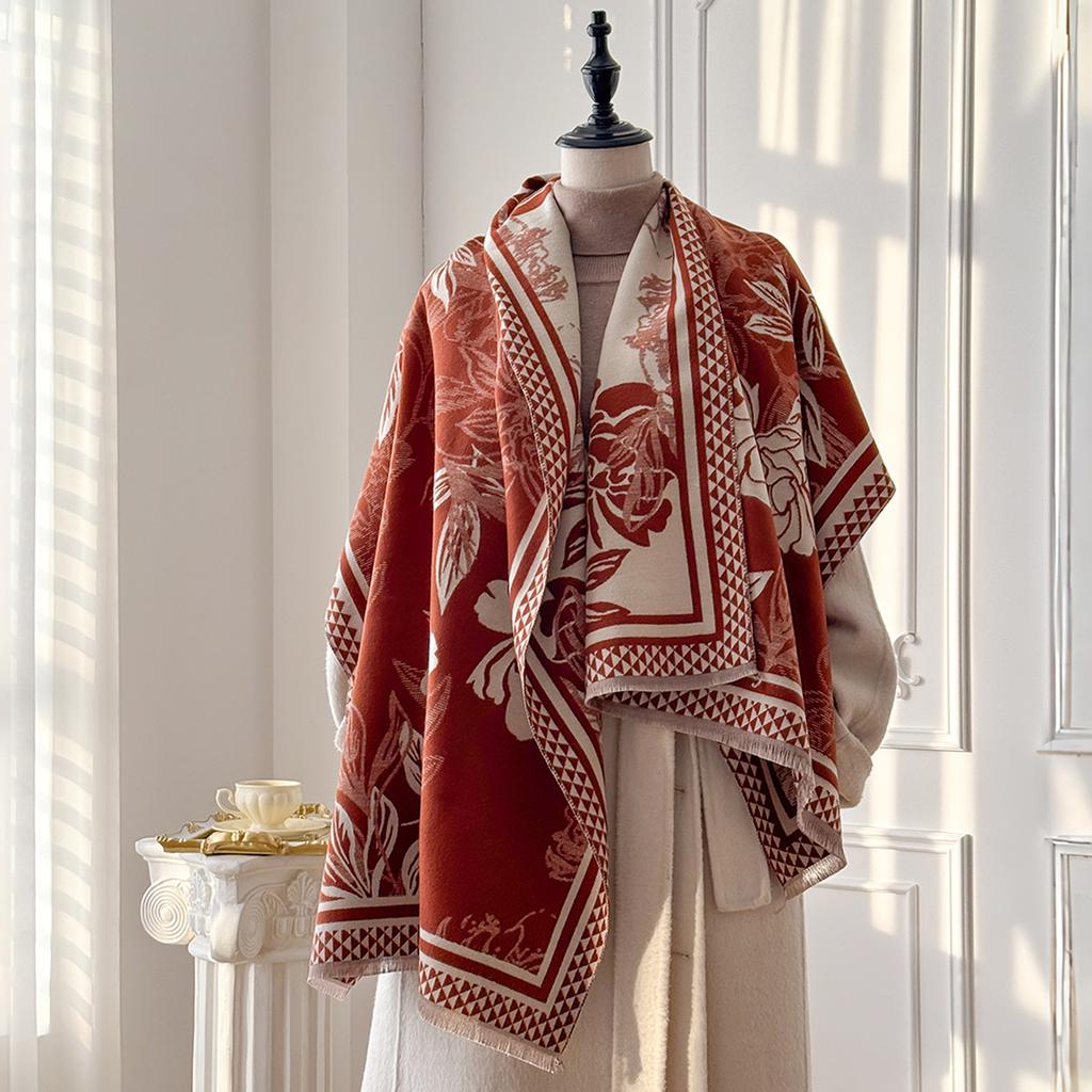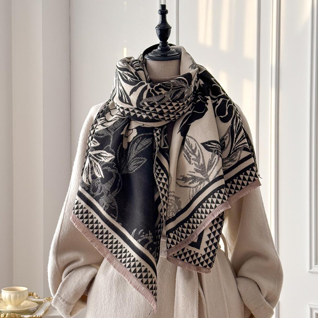 Women'S Faux Cashmere Winter Fashion Scarf Vintage Floral Printed With Tassels Soft Warm Shawl Elegant Wrap For Winter Outfits
