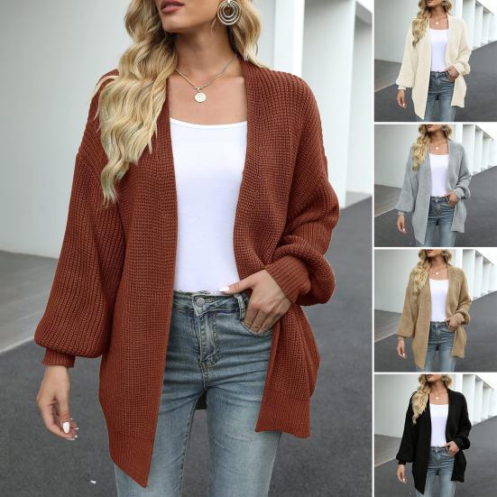 Стиль: Ощутите элегантность и моду с этим женским однотонным кардиганом с открытым передом, длинными рукавами и плотной вязкой, которая излучает изысканность.