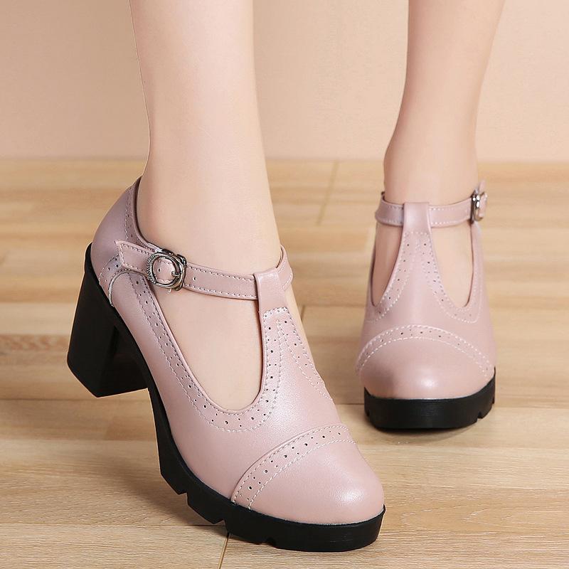2024 Новая мода британский стиль круглый носок туфли Мэри Джейн кожаные ажурные квадратные каблуки платформа ретро женские танцевальные туфли