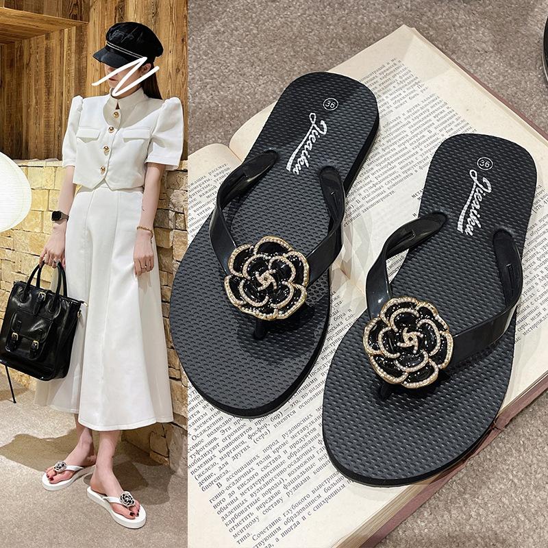 Женские шлепанцы Camellia, черные повседневные пляжные туфли на плоской подошве, летние удобные сандалии для прогулок на открытом воздухе 2024 года Chanclas Mujer