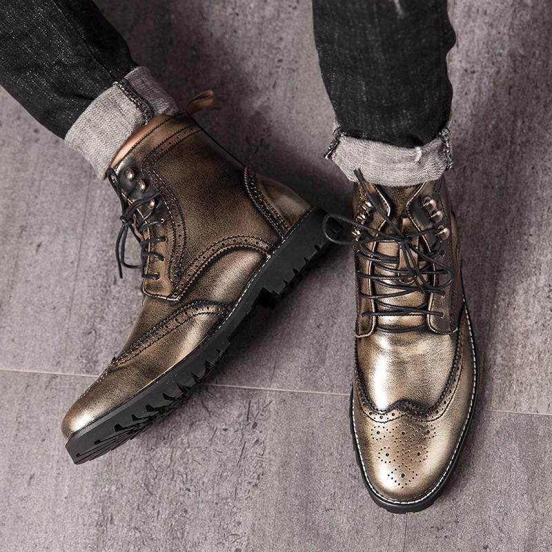 Высококачественные мужские повседневные кожаные ботильоны на шнуровке, британские рыцарские ботинки, уличные нескользящие элегантные кожаные ботинки на платформе в стиле панк