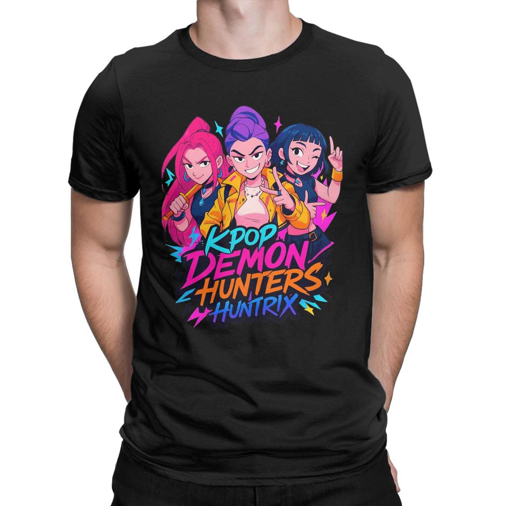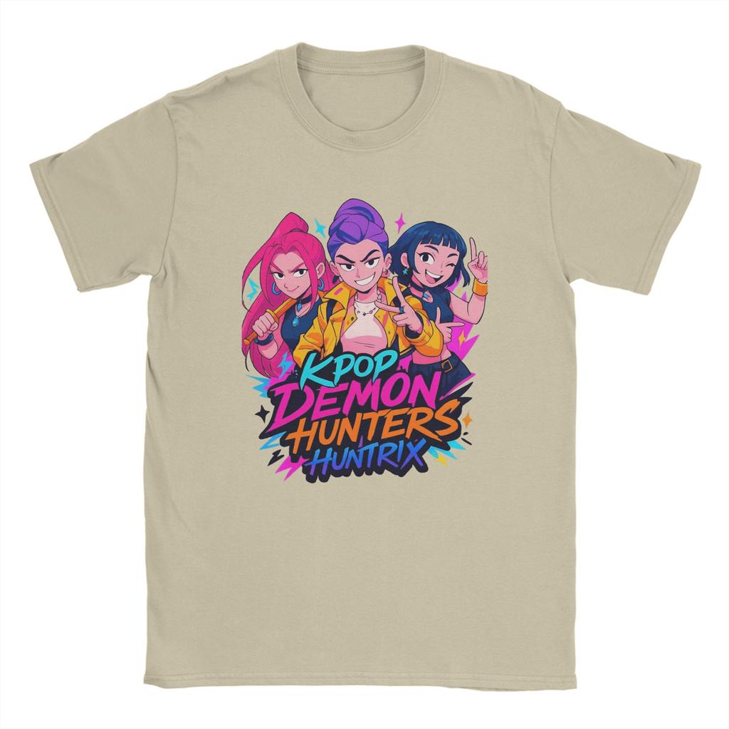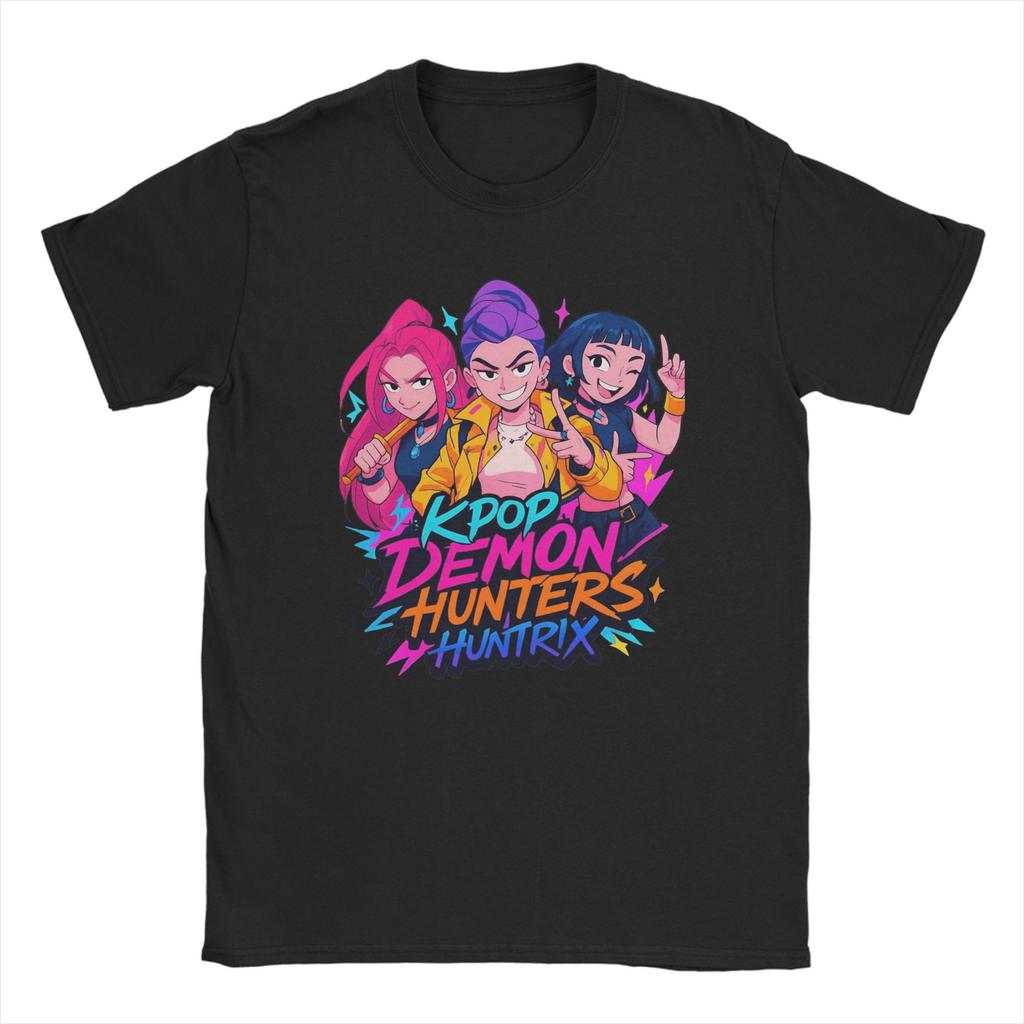 K-Pop Demon Hunters Vintage Huntrix Men's T Shirts Crazy Tees Short Sleeve O Neck T-Shirts 100% Cotton Graphic Printed Clothes