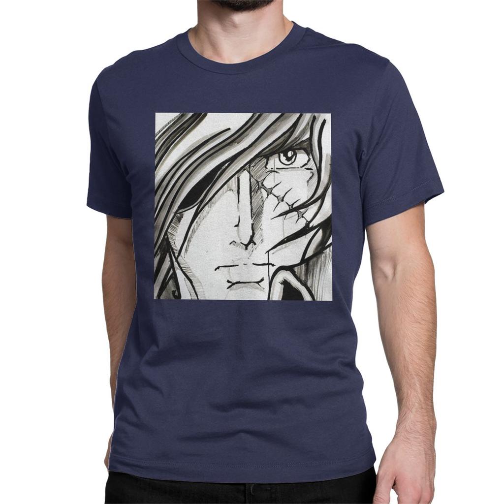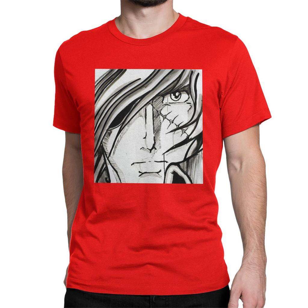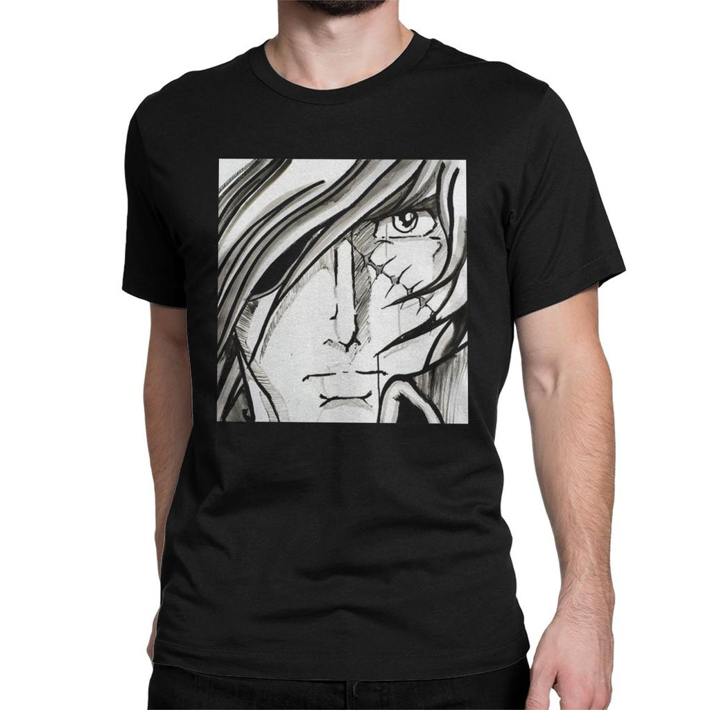 Men Albator Portrait Scar T Shirts Space Pirate Captain Harlock Pure Cotton Tops Novelty Short Sleeve Crewneck Tee Shirt T-Shirt
