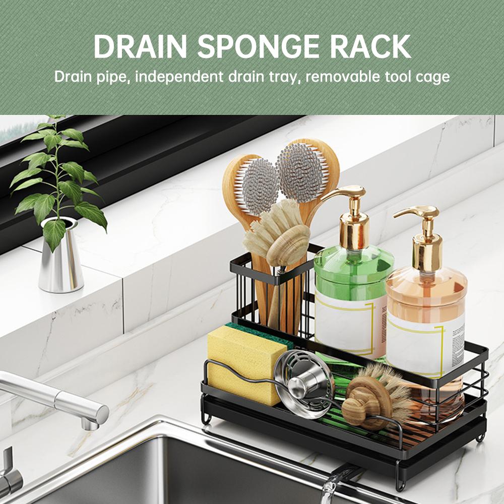 Sponge Holder for Kitchen Sink Caddy Organizer with Detachable High Brush Holder Dish Sponge Holder Drying Rack