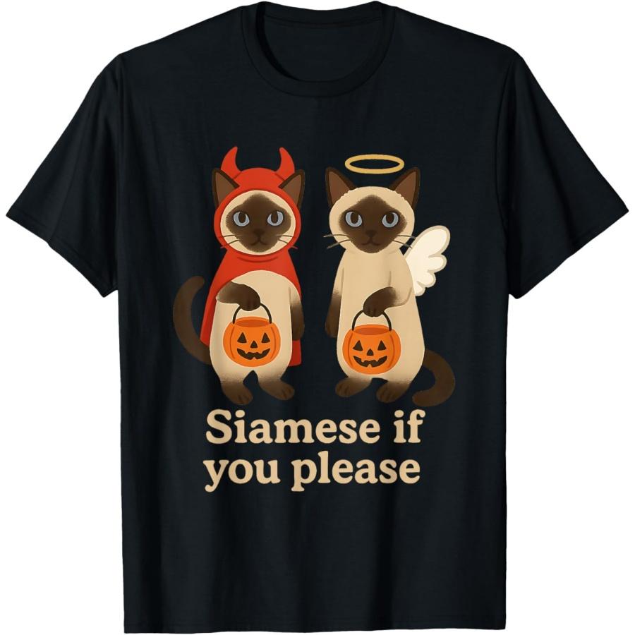 Сиамский Если Пожалуйста Смешной Кот Костюм на Хэллоуин Жуткий Каламбур Футболка