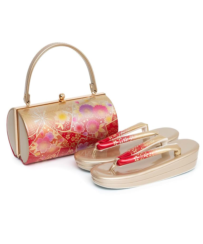 KYOETSU Zori and Bag Set for Zori with Japanese Set and Type Coming-of-Age Ceremonies, 2-Tier Fabric, 2-Piece (Zori Bag), B, Women's (F, 46)