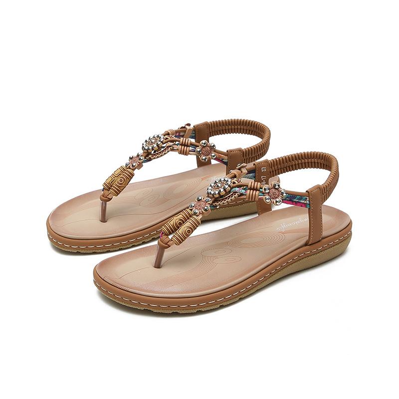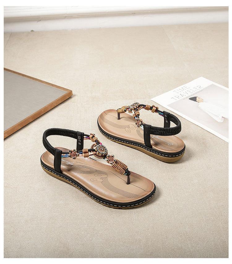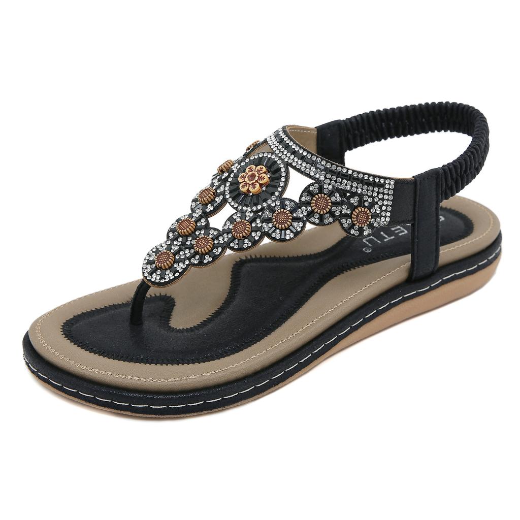 2024 Новые Бохо Большие Размеры Плоские Стразы Пайетки Плетеные Сандалии Открытый Носок Пляжные Сандалии Женская Обувь