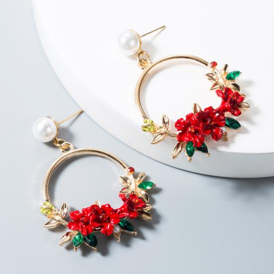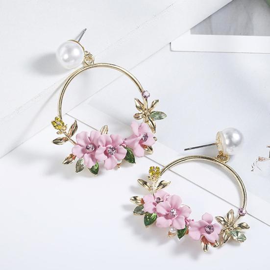 1 пара серег-подвесок, круглые, темпераментные, инкрустированные блестящими стразами, декоративные подарки с искусственным жемчугом, женские, милые серьги-гвоздики с подвеской в виде цветка
