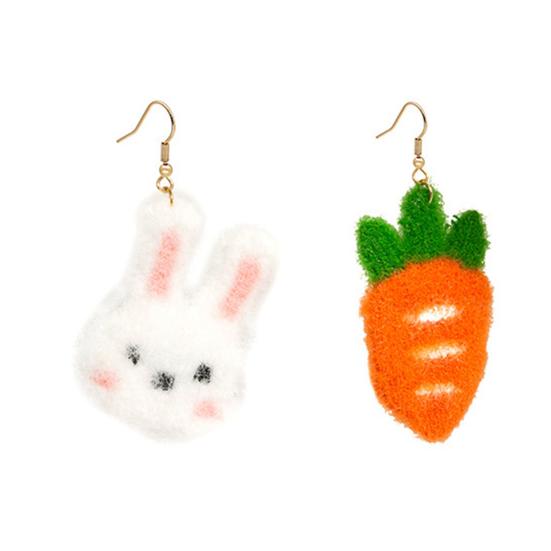 1 пара серег-подвесок Милые Асимметричные Забавные Зимние Осенние Милые Серьги-крючки с кроликом и морковкой Ювелирный аксессуар
