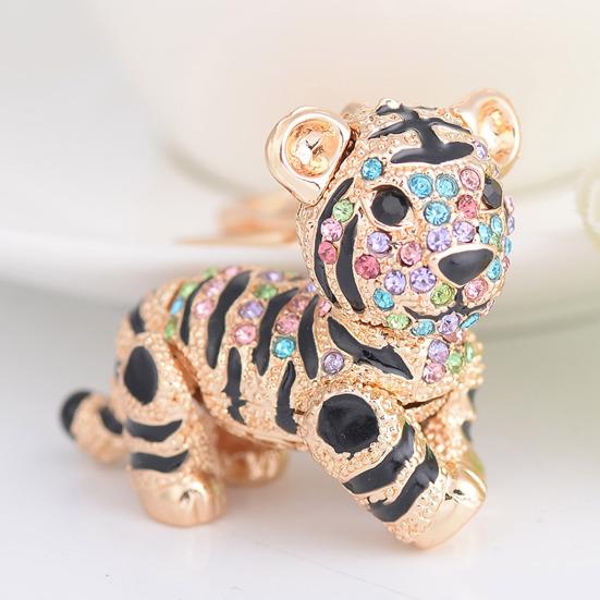 Брелок Яркий Декор Стразами Разноцветная 3D Подвеска Тигр Очаровательный Брелок для Сумки
